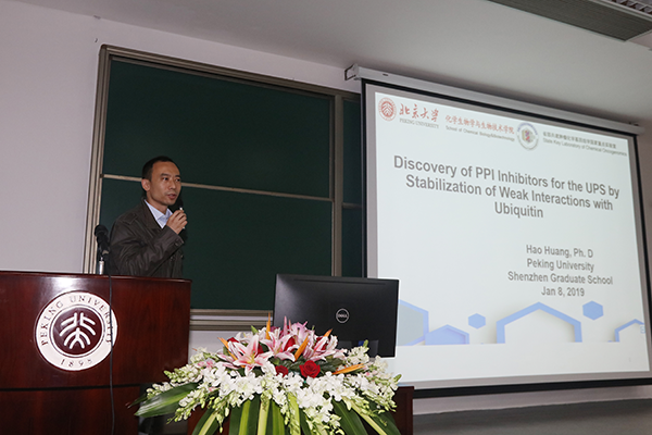 黄昊副教授作《Development of PPI Inhibitors for the Ubiquitin Proteasome System by Stabilization of Weak Interactions with Ubiquitin》主题报告