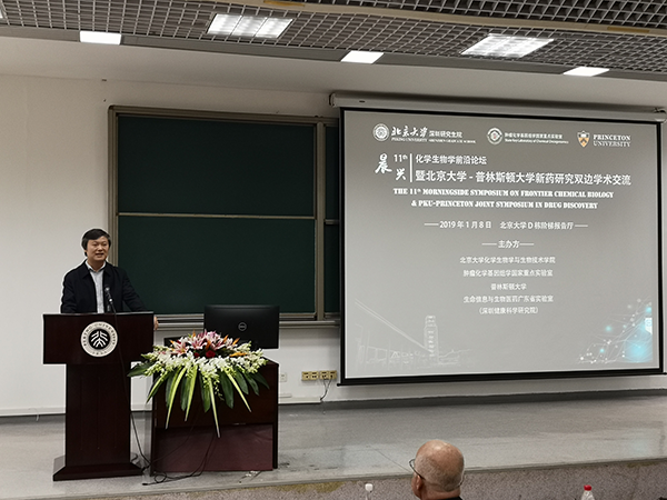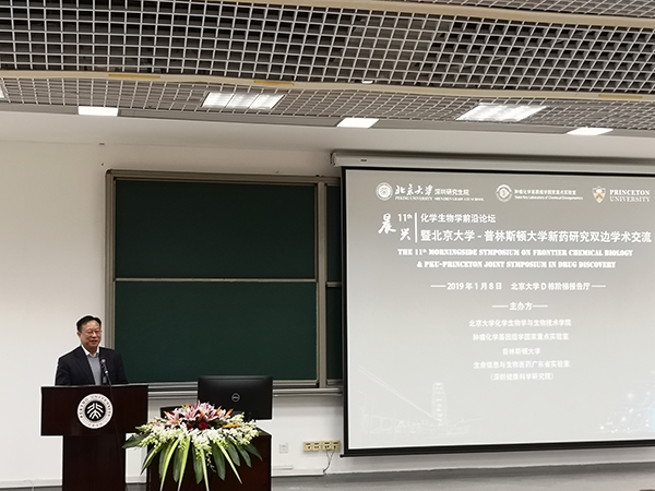 2019年1月8日,由北京大学化学生物学与生物技术学院(以下简称“我院”)、省部共建肿瘤化学基因组学国家重点实验室、普林斯顿大学、生命信息与生物医药广东省实验室(深圳健康科学研究院)共同主办的第十一届“晨兴”化学生物学前沿论坛暨北京大学—普林斯顿大学新药研究双边学术交流会(以下简称“论坛暨学术交流会”)在北京大学深圳研究生院D栋阶梯教室顺利进行并取得圆满成功。