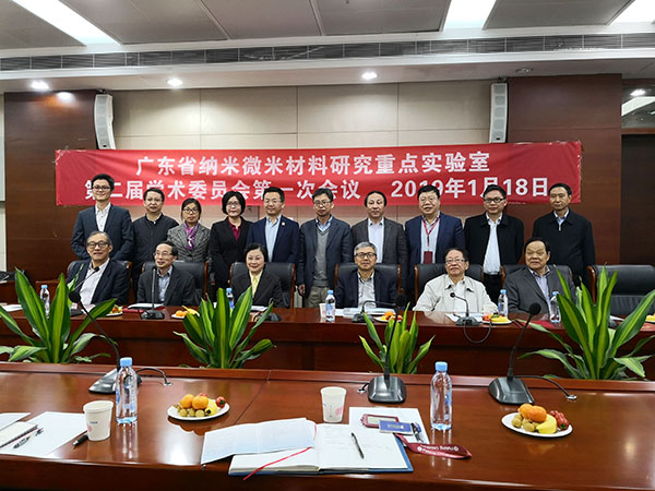 2019年1月18日上午,依托北京大学深圳研究生院化学生物学与生物技术学院的广东省纳米微米材料研究重点实验室在深圳召开了第二届学术委员会第一次会议,会议对该省重点实验室的定位和发展等议题进行了深入研讨。参加本次学术委员会会议的专家有中国科学院理化技术研究所佟振合院士(实验室学术委员会主任)、清华大学李亚栋院士、香港大学任咏华院士、中国科学院大连化学物理研究所和南方科技大学杨学明院士、厦门大学郑兰荪院士、香港科技大学和南方科技大学吴景深教授、南京大学丁维平教授、国创新能源研究院和加州大学伯克利分校茆胜教授、纳微科技股份有限公司董事长,江必旺博士、北京大学深圳研究生院杨震教授。此外,受邀出席会议的还有原国家自然科学基金委员会化学部常务副主任、省部共建肿瘤化学基因组学国家重点实验室事务委员会主任梁文平教授。