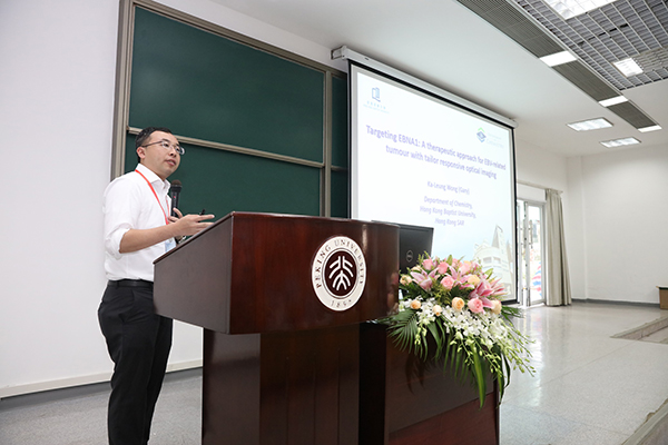来自Hong Kong Baptist University的 Prof. Ka-Leung Wong (黄嘉良)带来了题目为《Targeting EBNA1: A therapeutic approach for EBV-related tumour with tailor responsive optical imaging》的报告。报告围绕着Epstein-Barr Nuclear Antigen 1 (EBNA1)蛋白,介绍其课题组中开发具有成像和抗肿瘤活性的新型探针的工作。