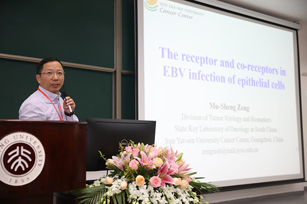 来自中山大学肿瘤防治中心(Sun Yat-sen University Cancer Center)的Prof. Musheng Zeng (曾木圣)为我们带来精彩报告,题为:The receptor or coreceptors in Epstein-Barr Virus Infection of Nasopharyngeal Epithelial Cells。他致力于鼻咽癌致病机制的研究,发现EBV病毒感染的受体及共受体,本次报告苏教授报告了其课题组发现EBV病毒感染的受体及共受体的工作和阐明EBV病毒在鼻炎上皮细胞中感染与转化的机制的工作等,让人印象深刻。