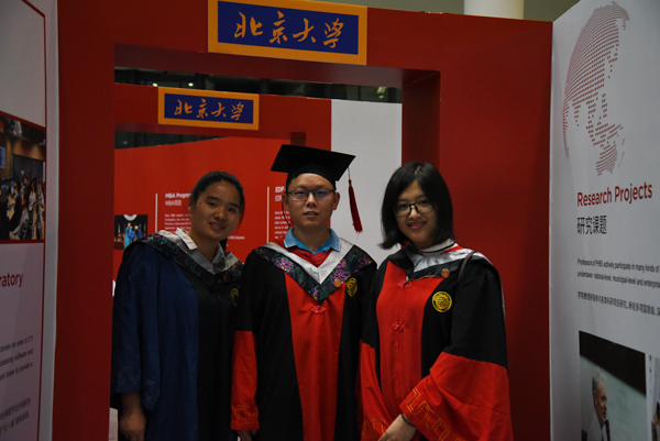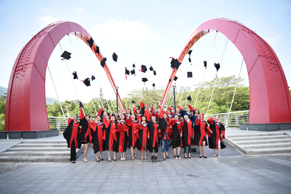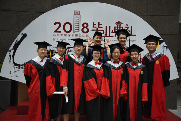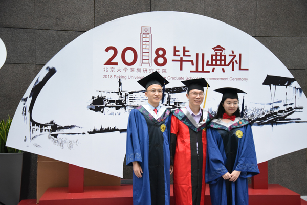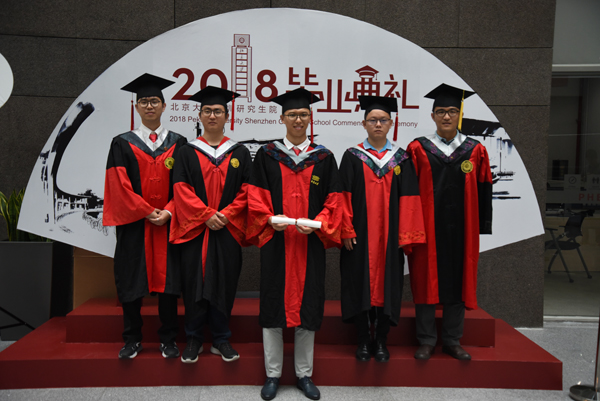在随后的典礼上,毕业生代表刘馨宇向全体毕业生发出“经历故事却不世故、历尽沧桑却不迷茫、身处社会却不‘社会’”的祝愿;教师代表许楠教授观点独到,用“PKUer”五个字母深刻解读了北大人的内涵;校友代表厉伟先生言辞恳切,赠与师弟师妹最真挚的寄语。北京大学深圳研究生院院长吴云东院士以“真”为主题,以《北大人在深圳》书中的真人真事勉励同学们“求真学问,练真本领”,并祝毕业生“大鹏展翅恨天低,前程万里任尔飞”。北京大学常务副校长高松院士致辞,在新征程的起点,寄语毕业生“不忘初心,方得始终”。