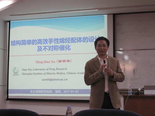 2017年1月3日上午,中国科学院上海药物研究所徐明华教授应我院黄湧副院长邀请,在E104报告厅为我院师生做了一场题为“结构简单的高效手性烯烃配体的设计及不对称催化”的精彩报告。会场座无虚席,徐教授的报告深入浅出,发人深思,我院师生与其进行积极的学术讨论和提问交流,气氛热烈,大家收获良多。