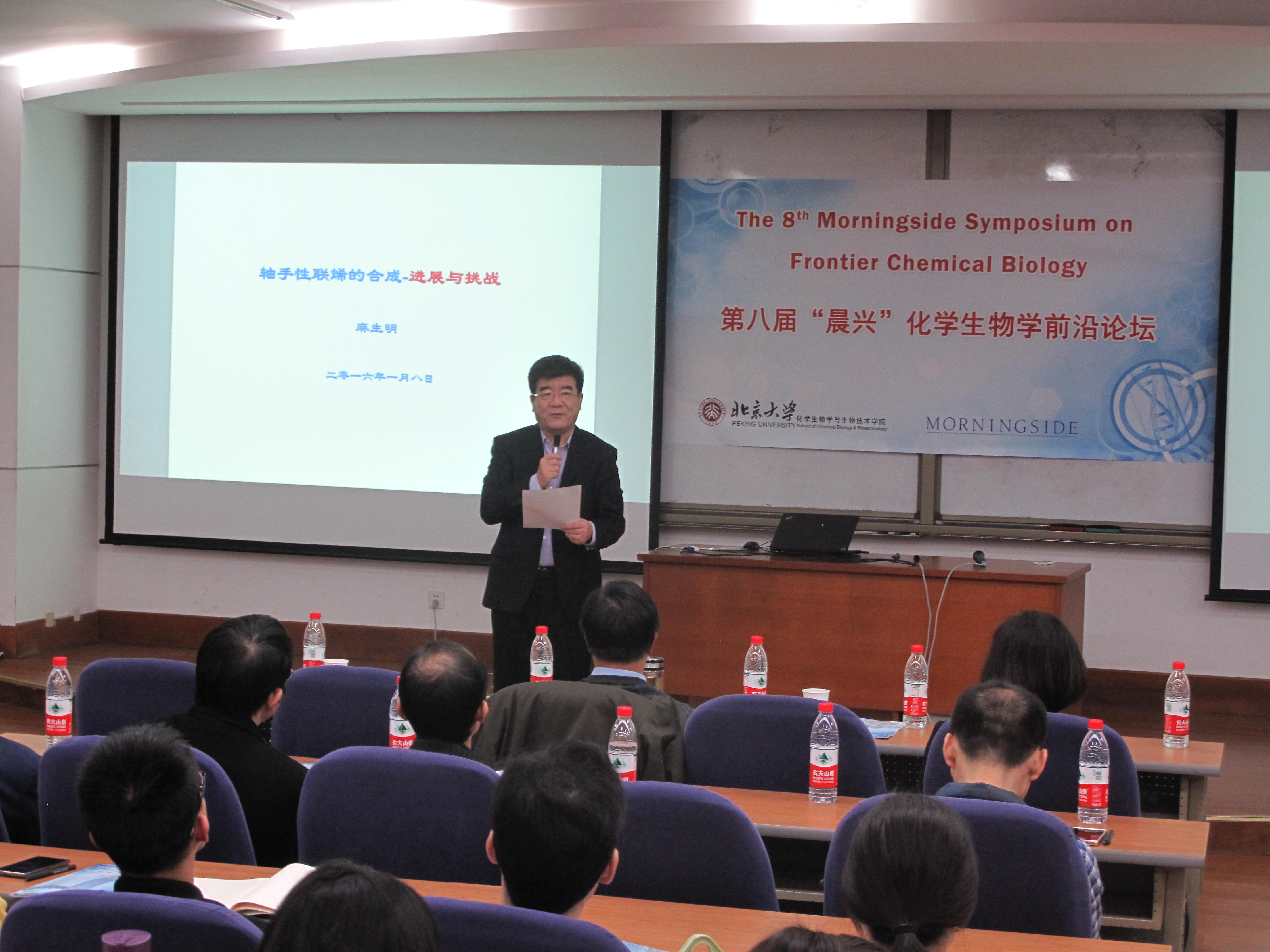 2016年1月8日,由北京大学深圳研究生院化学生物学与生物技术学院与晨兴投资集团联合承办,第八届“晨兴”化学生物学前沿论坛在北京大学深圳研究生院E-104顺利进行并取得圆满成功。本次论坛邀请到了麻生明教授(中国科学院院士),裴坚教授(北京大学化学与分子工程学院副院长),吴虹教授(美国科学促进协会院士,北京大学生命科学院院长)。