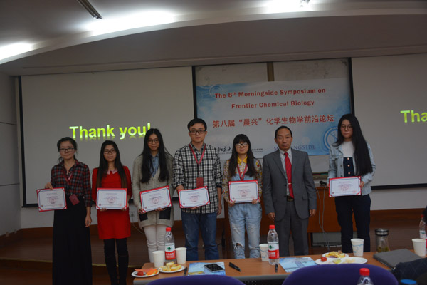 药明康德墙报展示奖(10人):左莹莹、田原、陈凯、郑楠(优秀奖);章梦珣、彭思宇、鞠俊、杨飞丽、耿浩、王冬园(入围奖6人)