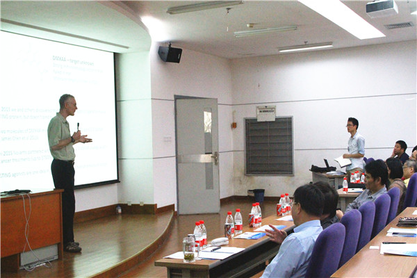 本次论坛围绕化学生物学的前沿研究工作展开,会议全程使用英文,分为上午下午两个半场。会议的主要内容包括小分子等化学工具在肿瘤治疗,干细胞重编程和信号转导方面的应用等。会议伊始,吴云东院士发表开幕致词。首先他回顾了学院十年来的发展,并重点介绍了目前学院的两个“深圳市孔雀团队”,分别由周强教授和叶涛教授牵头,最后他对四位嘉宾的到来表示了热烈欢迎。