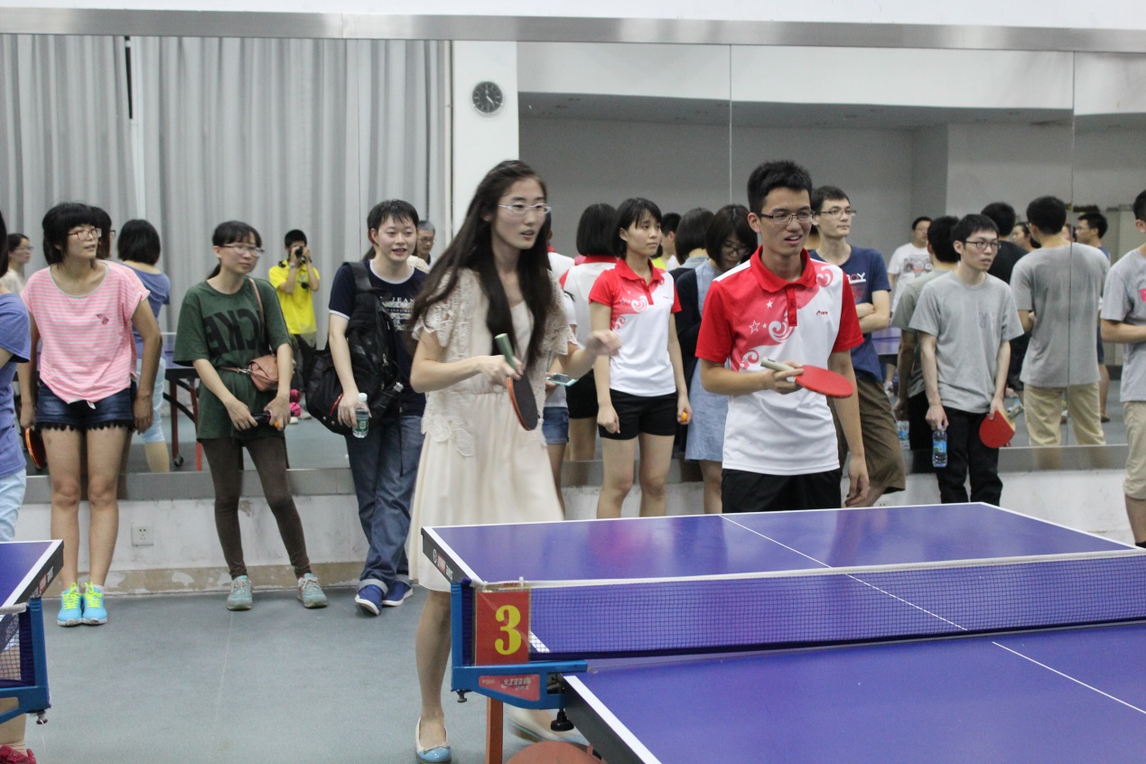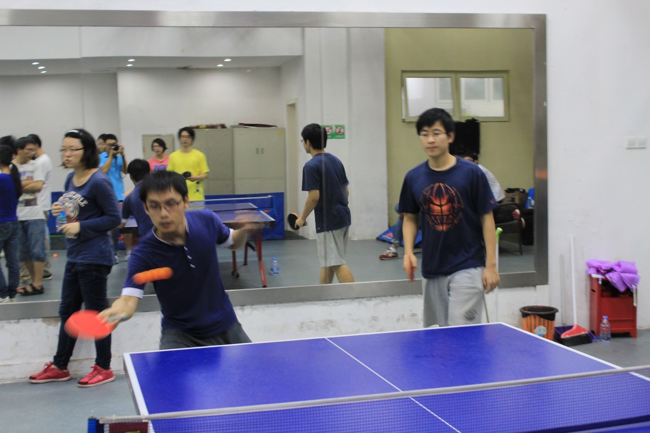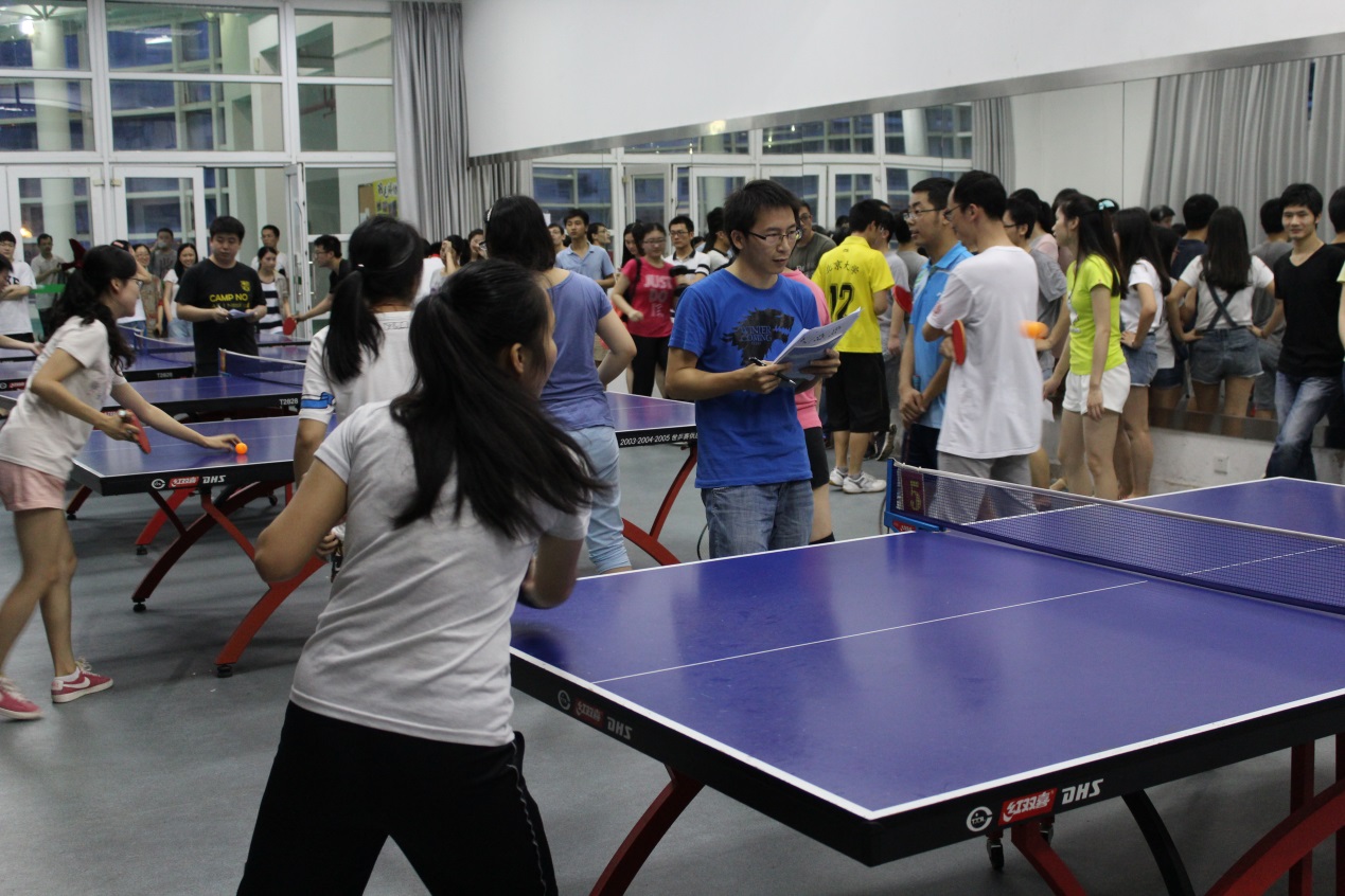 深圳的五月,雨季,雷声和雨声并奏,吹响了我院岛津杯乒乓球赛开赛的号角。经过20场激烈的小组赛,A组的黄湧团队和李子刚&霍玉庆团队,B组的吴云东团队和李志成&教工团队成功突围,各拿到一张半决赛的门票。半决赛于23号晚上,在G栋乒乓球馆进行,两场半决赛,打的难解难分,经过五个单项的鏖战,黄湧团队和吴云东团队都依靠混双的胜利,艰难地拿下了各自的对手。半决赛结束,稍作休整,决赛和三四名决赛分别在黄湧团队和吴云东团队,李子刚&霍玉庆团队和李志成&教工团队之间展开。这注定是一次势均力敌的乒乓球赛。这两场比赛又是历经了5个回合,两个团队都有自己的优势项目,你来我往,气氛十分紧张。拉拉队时而爆出欢呼,时而发出叹息,也沉浸于比赛中。最终,黄湧团队和李子刚&霍玉庆团队以微弱的优势赢得了比赛。这次乒乓球赛,主要是以学生为主导,也有教工和导师积极参与,为比赛增添了不少乐趣。当然,输赢第二,娱乐第一,让我们期待下一届的岛津杯乒乓球赛吧!