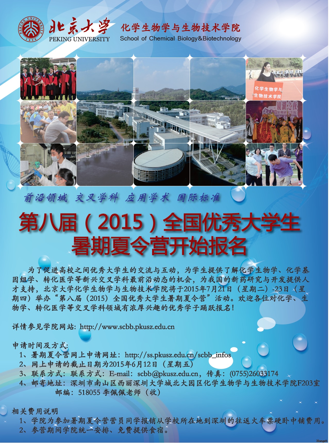 北京大学化学生物学与生物技术学院“第八届(2015)全国优秀大学生暑期夏令营”录取工作已经结束,后续工作通知如下: