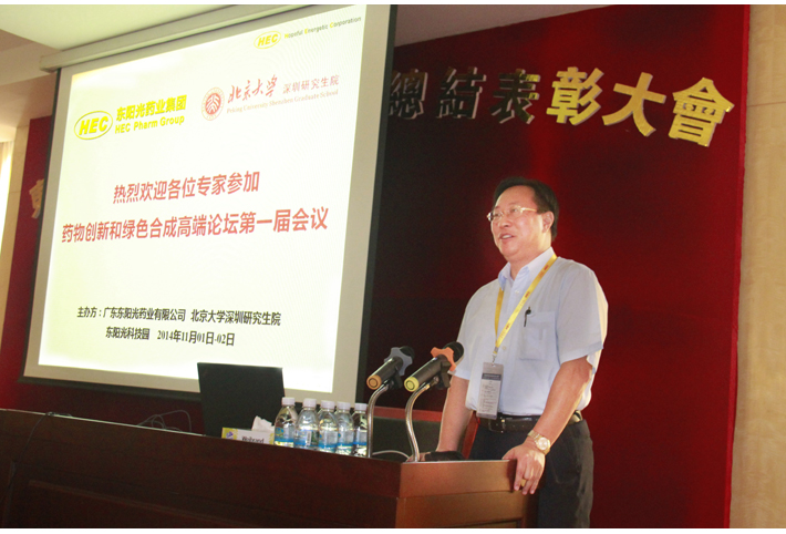 2014年11月1日-11月2日,药物创新和绿色合成高端论坛首届会议在广东省东莞市东阳光科技园隆重召开。本次会议由东阳光药业研究院和北京大学深圳研究生院联合举办,旨在探讨药物创新和绿色合成未来发展的新趋势,将基础研究与应用研究有机结合,实现产学研联盟,促进高校、科研机构、制药企业之间的技术合作和人才交流,助力创新药物的研发进程。