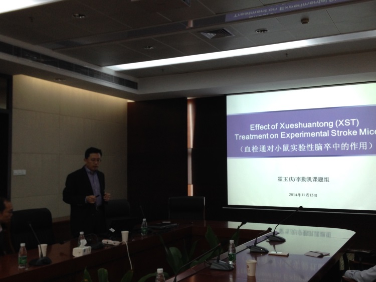 11月13日,中恒集团高层代表陈明一行来到北京大学深圳研究生院化学生物学与生物技术学院考察,参加了化生院举办的关于中药“血栓通”项目研究的最新研究进展报告会。报告会由化生院外聘专家,香港科技大学李志明教授主持,中恒集团高层领导代表,北京大学深圳研究生院涂欢副院长,化生院相关课题组长以及教师出席了此次报告会。