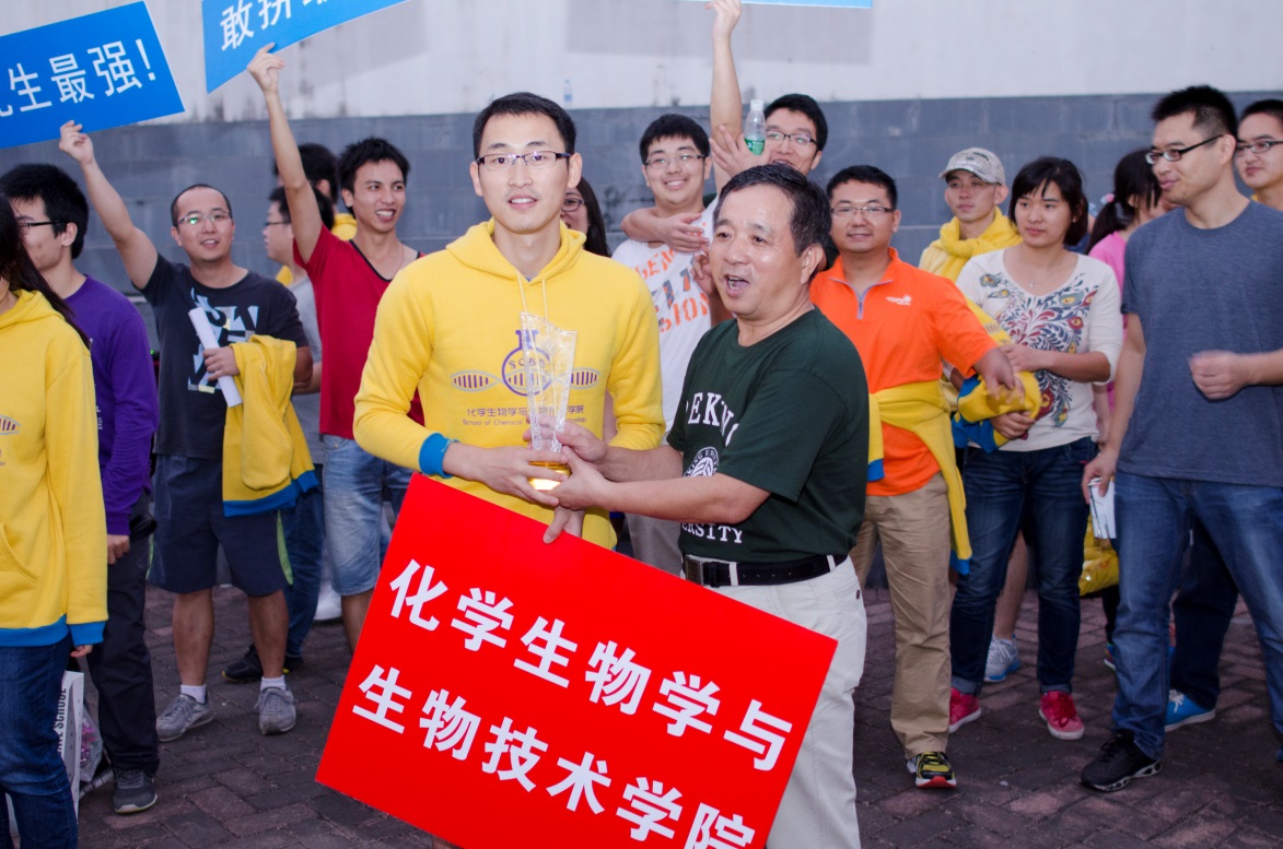 最后举行的颁奖典礼中,我们化学生物学与生物技术学院凭借在各个项目中的出色表现,获得团体第一名。北京大学副秘书长、深圳研究生院常务副院长白志强给我们学院颁奖!
