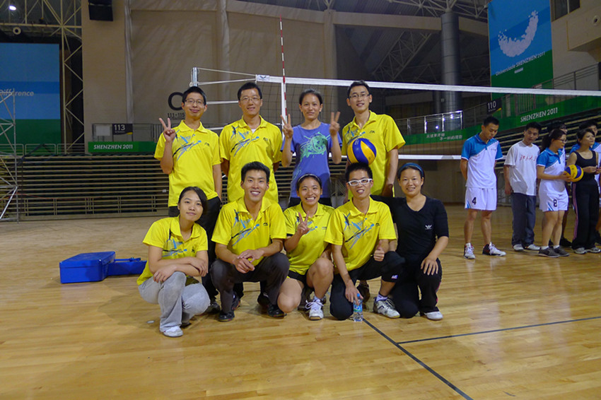 11月27日下午四点半,北京大学深圳研究生院第七届新生杯决赛在大学城体育馆打响!对阵双方为化学学院和汇丰商学院,此前两队已在小组赛对阵过,汇丰商学院的进攻虽然不如我院,但吊球出神入化,我院队员不太适应,加上心理起伏较大,以2:3落败!半决赛中,化学队战胜蝉联冠军多年的信息队,汇丰队则轻松战胜城规队,从而两队再次会师决赛!小组赛输给汇丰队,并没有使我院队员丧失信心,反而队员们相互鼓励,加强训练,尤其提高防吊、一传、进攻强度和队员间的默契。对于这次的决赛我们已有充分的准备和信心,而汇丰队也渴望夺冠,这必定是一场精彩绝伦的比赛,比赛过程没有让大家失望,经过将近两个小时的激烈争夺,终于化学3:1胜出汇丰,夺得我院的首个新生杯冠军!
