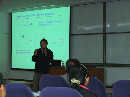 2012年12月05日,四川大学陈应春教授应我院汪兆丰同学和化学院研究生会学术部邀请,于下午两点在E104为我院师生带来了一场题为”Organocatalytic Asymmetric cycloaddition Reactions via HOMO-Activation”的精彩报告。