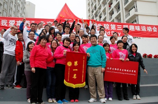 2012年12月12日, 迎来了北京大学深圳研究生院第三届趣味运动会。我院师生团结一心,勇夺此届趣味运动会团体冠军。首先,在方阵风采展示中,我院师生以响亮的口号“勇夺第一,团结一心”,不仅喊出了我们的心声,更迎来了在场观众的阵阵掌声。在各个项目中,我院每个体育健儿充分发挥自己的特长,表现出色,团结一心,充分体现了我院积极向上的精神面貌和体育风采,获得了拔河比赛以及多人多足绑腿跑比赛的第一名,最终我院师生齐心协力以绝对优势的总成绩蝉联了趣味运动会冠军。