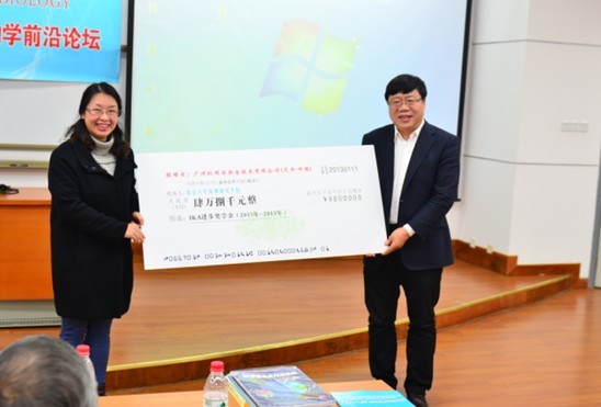 李波小姐代表IKA公司向化学生物学与生物技术学院进行了资金捐赠,杨震院长代表化学生物学与生物技术学院接受了捐赠。