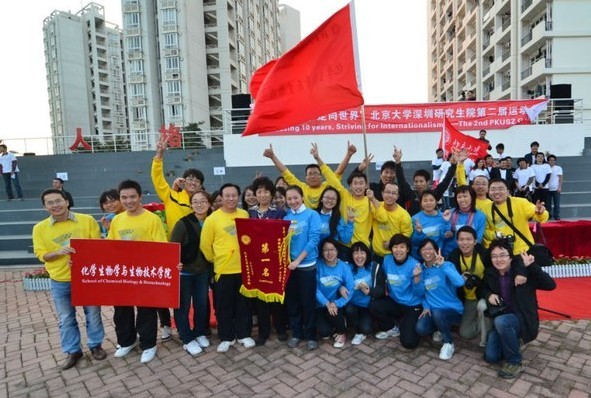 2011月12月4日,我院全体师生参加第二届“征程十年,走向世界”北京大学深圳研究生院运动会,并在此次运动会中勇夺冠军,成为参赛人数最少,夺奖数目最多的队伍。在开幕式中,由赵劲老师带领的化学方阵为全校师生留下了深刻印象。在拔河,风火轮,集体跳绳,30人迎面接力项目中,我院师生齐心协力,团结一致获得多项第一名的好成绩。此次运动会充分体现了我院学生拼搏向上奋发图强勇于突破的奉献精神,通过运动会使我院师生积极互动,锻炼身体,并希望我们学生将运动精神与学习科研结合起来,做到科研,运动两不误。