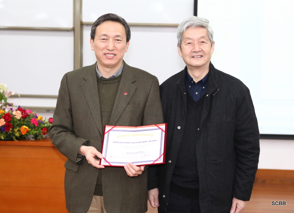 晨兴集团代表,北京大学原教务长,北京大学化学系教授(退休)羌笛分别向三位讲座专家颁发了荣誉证书。