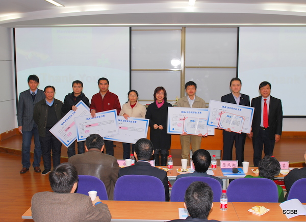 IKA大中华区市场总监兼总经理执行助理李波小姐代表IKA公司致辞,并邀请吴云东院士、杨震教授为“IKA进步奖学金”获奖同学颁奖(5名):常乐、汉京春、刘小卒、刘君羊、徐涛。