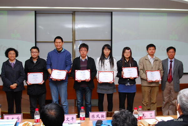 潘峥婴副教授主持了奖学金颁奖环节。本次论坛颁发了2010年度“IKA进步奖学金”、“晨兴优秀论文奖学金”、“康特腾交叉奖学金”、“药明康德学术奖学金”等。