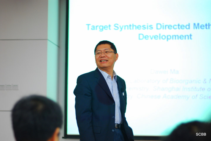 马大为研究员以“Target synthesis directed methodology development”为题,重点介绍了邻位促进的铜催化sp2碳-杂原子键偶联反应,及其在医药活性分子合成中的应用。