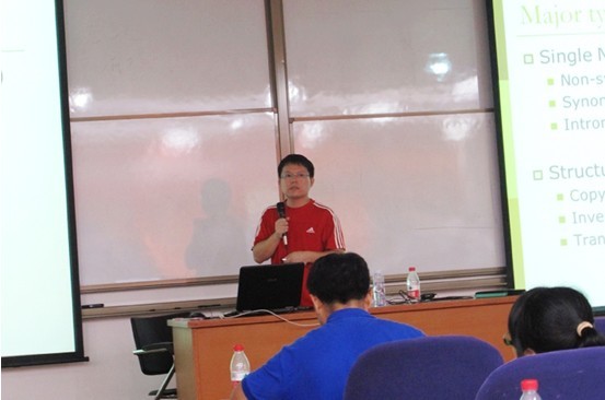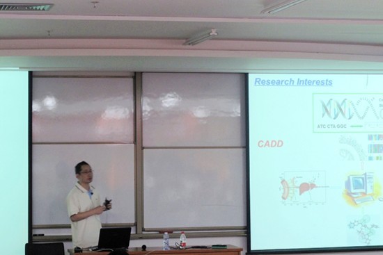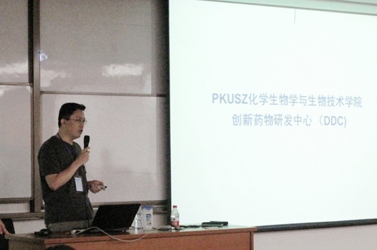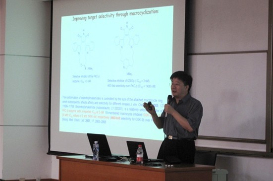药明康德公司的黎健博士依据药明康德药物研发的进展及其丰富的工作经验,为在场的所有同学做了名为“Fragment-Based Drug Discovery :Application to lead Generation”的报告。