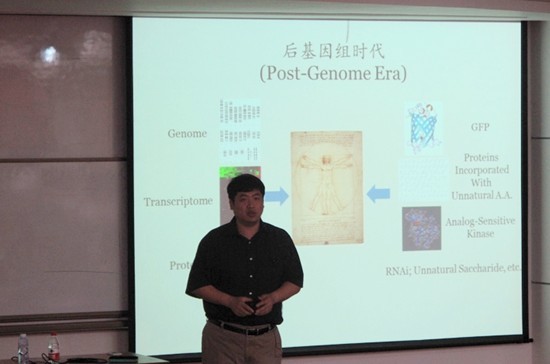 潘峥婴老师以“当大象遇到蚂蚁”为题,生动地展示了我院化学基因组学在生物化学的研究中,利用小分子探针来系统地研究特定生物学靶点和生物学过程。