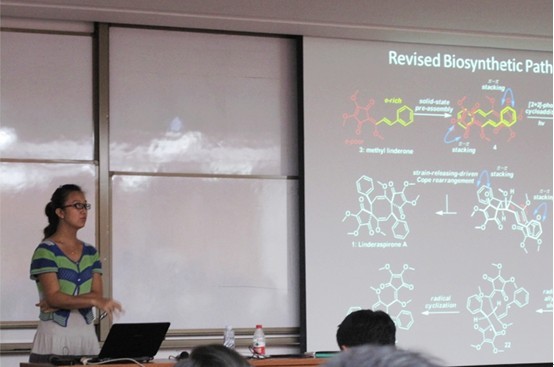 李闯创老师向夏令营同学们展示了“明星分子”Guanacastepenes的全合成研究以及在杨震教授的带领下,课题组在天然产物全合成中取得的累累硕果。