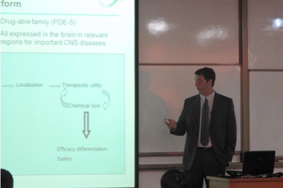 美国辉瑞公司的CVMED药化部主任Spiros Liras博士以“phosphodiesterase inhibitor as treatments for psychiatric and neurodegenerative diseases”为题,向同学们介绍了药物PDE-10和PDE-9的研发历程。