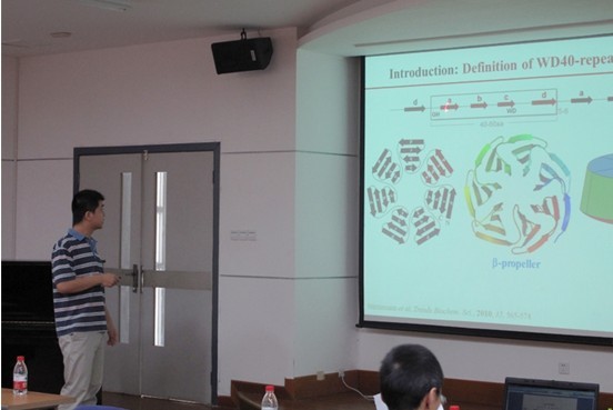 全军民老师介绍了其课题组的三个研究方向:利用计算化学模拟PPI在有丝分裂周期调控中蛋白相互作用;基于结构的新药物分子设计,药物动力学和药物体内活性的计算;底物辅助、产物辅助和中间体辅助阐述的从非酶到酶催化的机制进化。