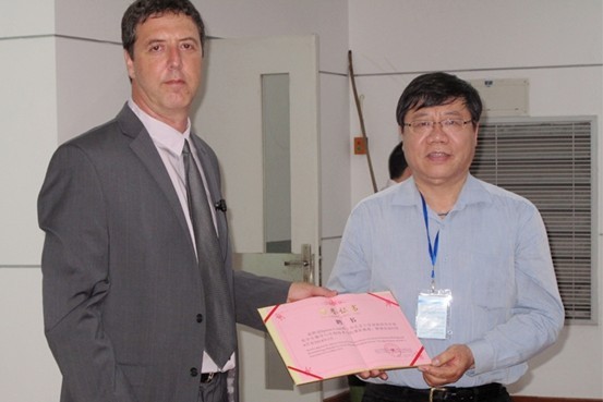 杨震院长向辉瑞公司的CVMED药化部主任Spiros Liras博士授予荣誉证书。