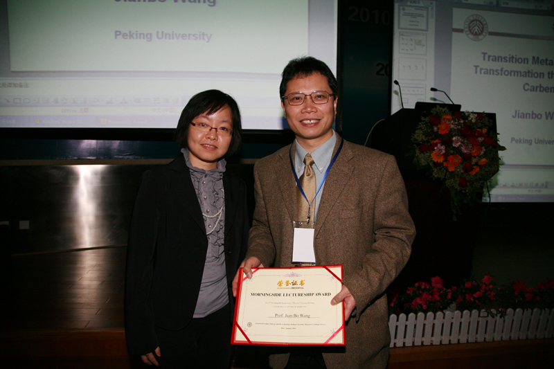 北京大学化学与分子工程学院王剑波老师,做了“Transition Metal-Catalyzed Transformation through Metal Carbene”的专题学术报告。王老师在报告中,向我们深入细致而又清晰明了地介绍了其课题组在金属卡宾领域的重要研究:1.一些钯催化下叠氮化合物所参与的有趣反应,并发展了一类通过钯卡宾方式的高效插羰反应;2. 炔烃和联烯作为金属卡宾前体的研究。一如当年课堂上的风采,王老师深厚的理论功底,不仅在他发表的研究成果中格外瞩目,更在精彩的报告中展现得淋漓尽致;把各种复杂的转化和重排过程用寥寥数语便能生动形象得阐述清楚,同时通过层层递进的紧密联系,把众多的成果以一个完整的故事娓娓道来。报告结束时还和我们分享了“王组足球队”的全家福和队标,LOGO的天才设计,恰如其分地体现了他们课题组的精彩化学。