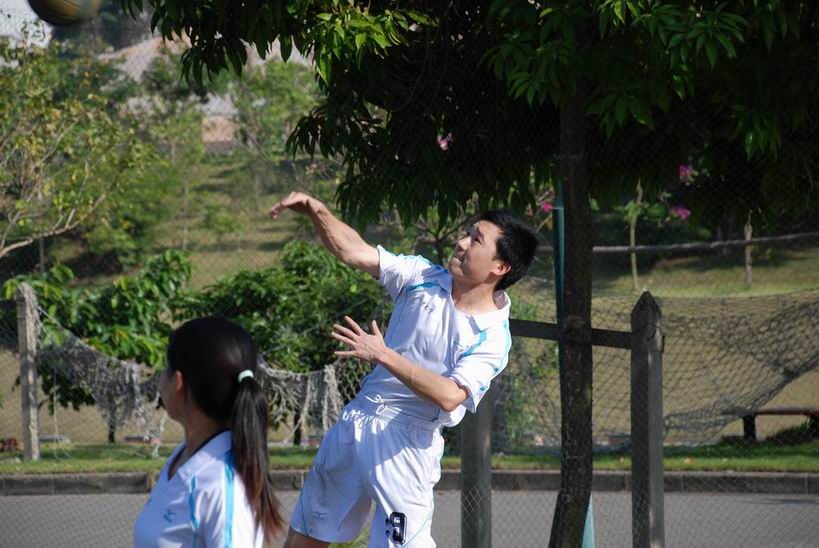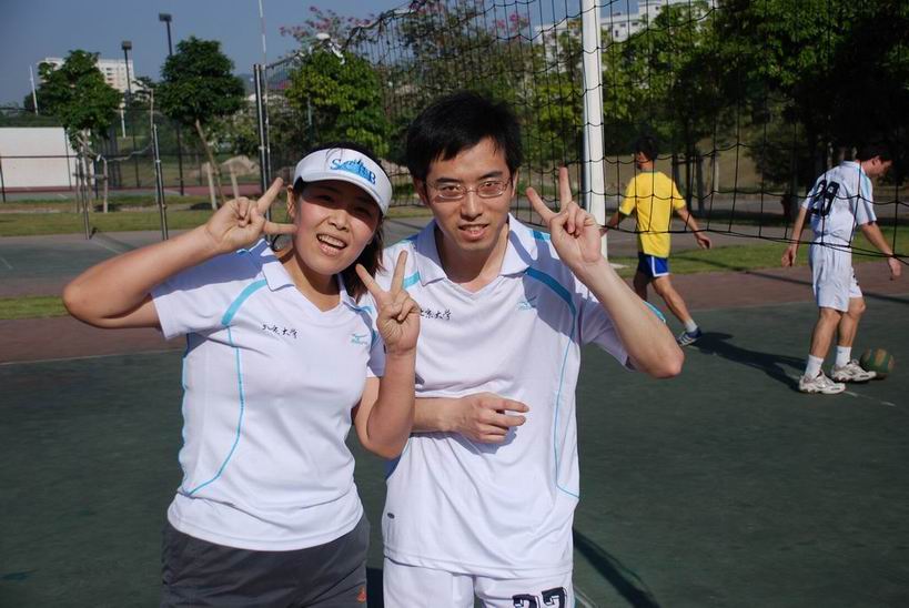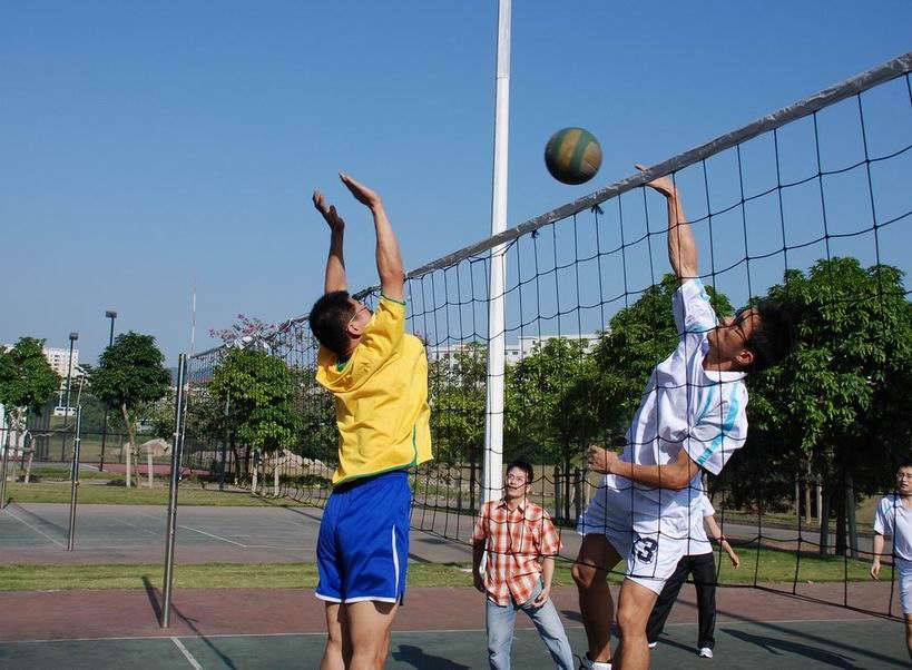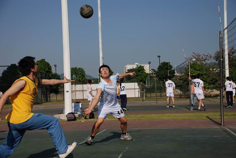 2009年五月六日下午,在我院排球协会的组织下,院内排球友谊赛正式开战。来自化学、生物不同课题组的老师、同学分成5队展开较量。此次比赛盛况空前,大家的热情也极为高涨。在占用2块场地比赛的同时,剩余的2块场地也被用来作赛前热身。精彩的对攻引来了拉拉队员们的阵阵欢呼。