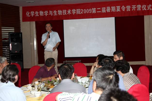 13日晚,夏令营开营仪式隆重举行。北京大学常务副校长林建华,北京大学校长助理、深圳研究生院常务副院长史守旭教授,北京大学校长助理、211办公室主任李晓明教授、北京大学研究生院常务副院长王仰麟教授、深圳研究生院副院长栾胜基教授、深圳研究生院环境与能源学院院长耿旭教授,美国辉瑞制药公司的Alex Fowkes博士等4位专家,来自于国内外的知名专家,化学生物学与生物技术学院全体教授出席了开营仪式。