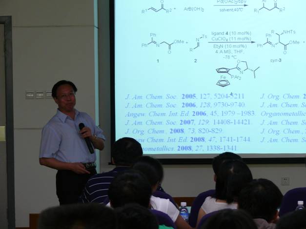 14日和15日两天,学院各个课题组的仲寒冰、李志成、黄湧、江必旺、全军民、王智刚、邓宏魁、林硕、苏晓东、时艳、张慧、叶涛、潘峥婴、吴云东、李闯创教授为同学们送上了15场精彩的学术报告,全面介绍各个课题组研究方向和工作进展,各位教授将科研工作与个人经历结合,充分展示课题组的科研特色和各位教授的个人魅力。使同学们全方位了解到,目前学院的各个课题组正围绕新药研发中的核心问题,运用学科交叉的研究方法,充分发挥有机合成化学、化学生物学、细胞生物学、发育与遗传学、结构生物学、分子生物学、计算化学、纳微米材料学等学科交叉融合的功能和作用,协同攻关、密切配合、在抗癌和抗病毒药物研究以及相关领域开展的各项处于世界前沿甚至是尖端的科学研究工作。