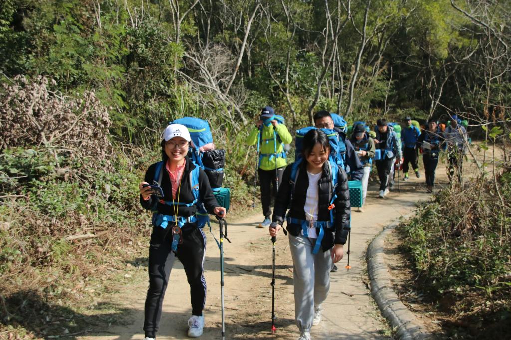 路途中,两支队伍独立行进,相互超越;同学们在保持队形的同时,也打开了话匣子,欢声笑语始终伴随着前进的队伍。虽然是冬天,但深圳的山上仍然充满了生机,凌寒独放的梅花成了路途中一道亮丽的风景线。中午12:00左右,两支队伍先后到达马峦山梅亭,进行午餐和休整。