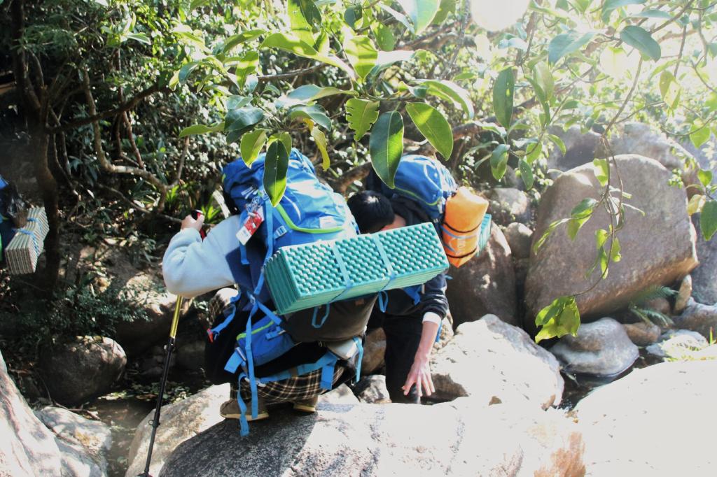 午餐之后,两组在梅亭下面展开了一系列游戏和团队建设项目。下午的路途强度较低,除了一小段穿过茂密丛林的路之外,其他的路都以乡道为主。在休息的时候,老师也向同学们介绍了户外迷路时的处理方法、野外出行七原则、伤患评估系统筹实用的知识。下午16:00左右,两组同学先后到达露营地点。