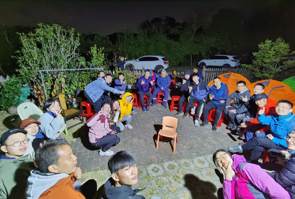 晚饭后,同学们围坐在炉火边,相互分享着第一天露营的新奇体验,经过了一天的同甘共苦,同学们渐渐敞开心扉,彼此的距离进一步拉近。李明明老师也对第一天同学们的表现做出了点评,并且对第二天的行程做了简单的介绍。晚上十点过后,同学们纷纷钻进帐篷休息。男生以帐篷为单位排了值班表,轮流值夜班以防突发状况。
