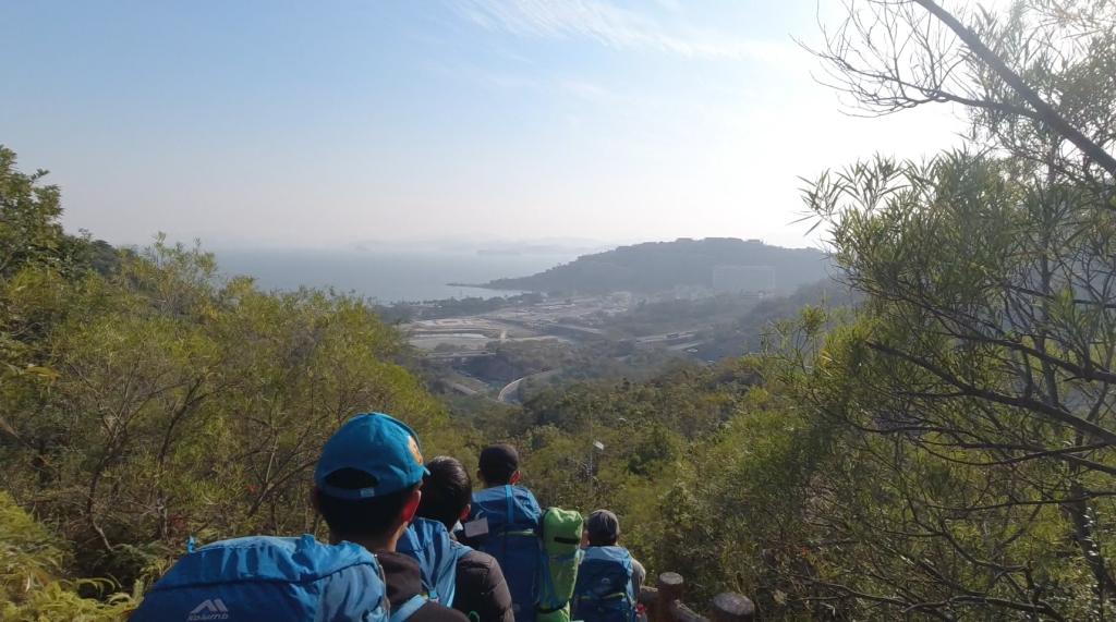 经过一个多小时的车程,大巴车到达了位于深圳市盐田区的小梅沙附近,徒步从这里开始。同学们被分成了两组。一组由2020级刘汝东同学和王荣亚同学担任组长,二组由2019级庄惠玲同学和2018级张文斗同学担任组长。两组同学也根据队伍行进的需要,设置了向导、队务、队医、安全员以及摄影师等分工。除了带队老师以外,通识教育中心还邀请到深圳山地救援队的张俊文、单桂林老师为两支徒步队伍提供紧急救援和指导。