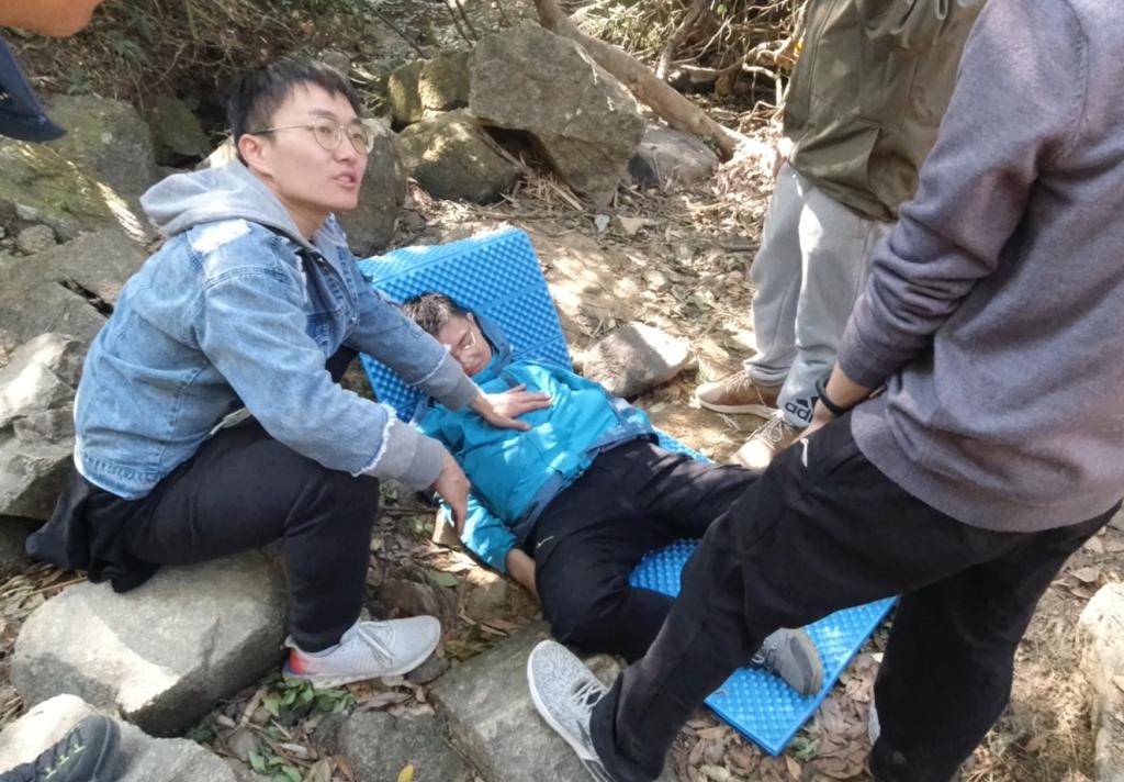 在第二个情景中,二组同学遇到了一次“爆炸事故”,“事故”造成了队员的“死亡”“大出血”“轻伤”和“受到惊吓或精神失常”,而一组同学作为“紧急救援队”赶到事发现场,并对“伤员”采取必要的措施。虽然时间紧急,“伤员”众多,但同学们依旧可以按照明确的分工各司其职,完成了对几名“伤员”的评估和救治工作。任务结束后,两组同学分别互相就对方的表现做了点评。深圳山地救援队的张俊文老师也分享了自己从事野外救援多年的经历,并且对本次任务中表现不足之处给出了宝贵建议。
