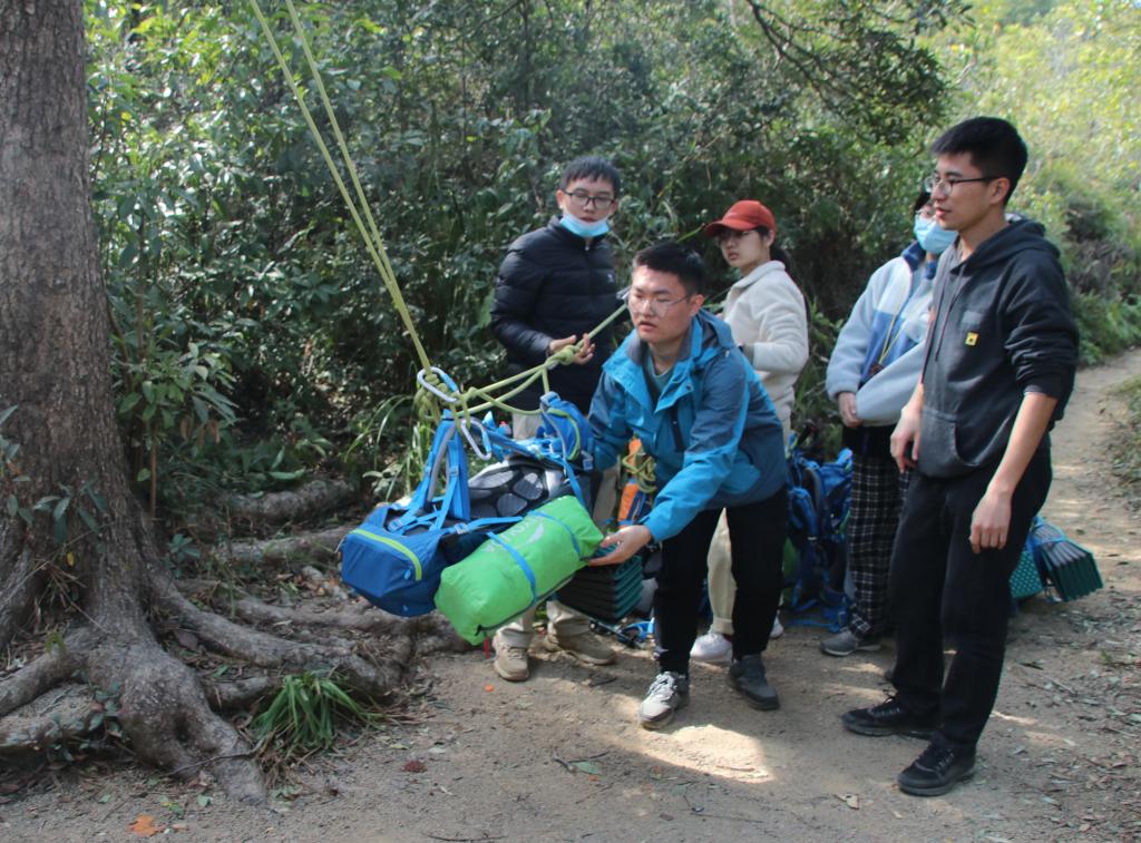 1月2日清晨,下降的气温掩不住出发的喜悦。早7:30,同学们整装待发在北京大学素质拓展训练场地集结。经过装备和人数的清点,大家一起踏上了前往露营地——马峦山郊野公园的大巴车。在车上,李明明老师和覃峨老师教了大家一些基本的绳结打法,这些绳结对于处理野外徒步中遇到的一些突发状况是十分必要的。