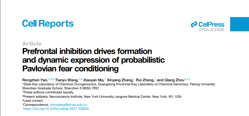 北京时间2021年8月10日晚23时,北京大学深圳研究生院周强实验室在Cell Reports发表论文,发现前额叶皮层中的一群中间神经元(parvalbumin/PV,小清蛋白神经元)在概率记忆的形成和调节中发挥重要的作用。