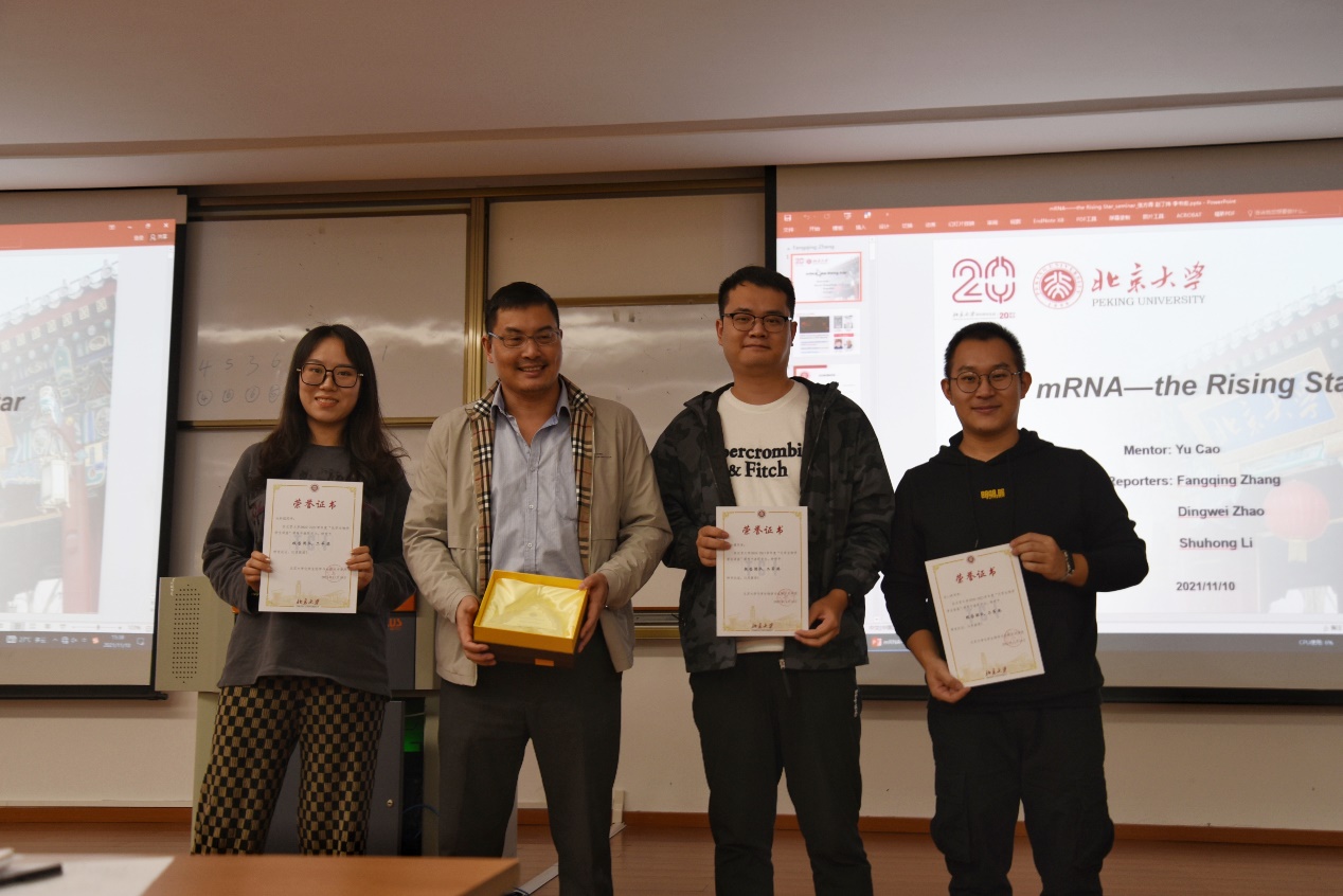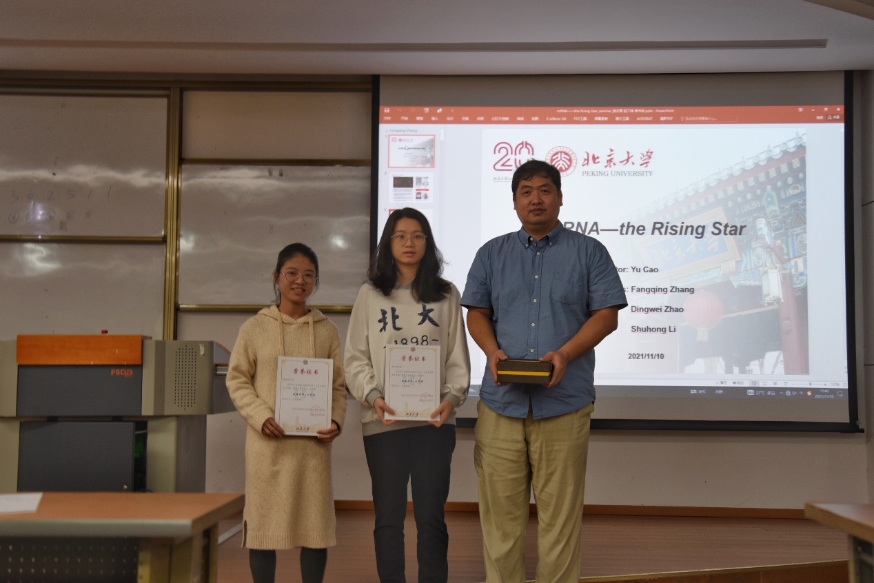 2021年11月10日下午,化学生物学与生物技术学院在E104举办了“2020-2021年学生讲座颁奖典礼”。在过去的一年里,化生学院15位课程讲座指导老师、两位助教以及各位报告人通力合作,为大家奉上了一场场精彩的学术报告,给同学和老师们带来了涉及前沿领域,交叉学科的专业知识。