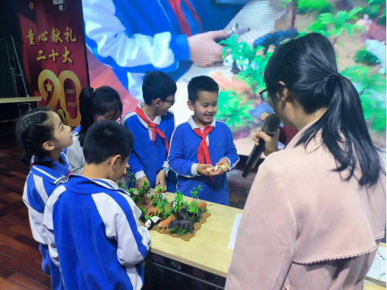 最后的科普互动环节孩子们踊跃参与,绝大部分学生通过本次活动所学知识,都能快速将沙盘中的常用实验动物及野生动物、经济动物区分开来。