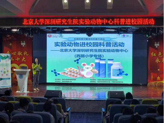 活动以“实验动物进校园-助你感受科学魅力”为主题,通过线上线下相结合的方式举行,西丽小学共计400余名小学生参与线下活动。北京大学深圳研究生院实验动物中心主任卓振建、深圳市科学技术协会张萍老师、西丽小学副校长万丽华、西丽小学课程发展中心主任肖珊珊、中国科学院深圳理工大学孔艺教授、深圳大学张明教授等出席了本次活动。