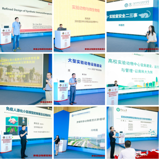当天的学术交流活动报告中,空军军医大学实验动物中心主任师长宏教授、北京大学深圳研究生院曹宇研究员、深圳大学医学部裴新海教授针对本次学术活动主题,分别作了题为《免疫人源化小鼠模型的制备及应用研究》、《Refined Design of Synthetic Immunotherapeutics》及《利用基因工程小鼠探讨不同类型乳腺和甲状腺癌间的相互转换机制》的大会报告。复旦大学附属肿瘤医院实验动物中心主任闫明霞研究员及赛业生物首席科学家与中国区副总裁俞晓峰分别为大会带来了题为《肿瘤转移动物模型在肿瘤研究中的应用》及《肿瘤小鼠模型构建技术及其相关应用研究》的最新研究成果。中山大学实验动物中心执行主任蔡卫斌教授、暨南大学实验动物管理中心副主任邢会杰、中国科学院深圳先进技术研究院支撑平台处实验动物管理办主任林惠然、深圳医学科学院实验动物中心副主任商海涛及南方科技大学实验动物中心高级工程师刘晓梅针针对实验动物设施建设、实验动物屏障环境管理等热点问题做了题为《大型实验动物设施建设——从用户单位的角度》、《实验动物屏障设施安全运行闭环管理要点》、《实验室安全管理与个人防护规范》、《实验动物与微生物组》、《高校实验动物中心建设、运行和管理经验分享》学术报告。此外,实验动物行业的优秀企业家也就实验动物笼盒自动化系统、饮水方式与安全等方面进行了展示。