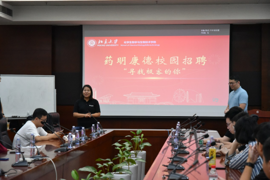 为了提供更多的就业机会,做好学院2024届毕业生就业工作,2023年10月19日16:00,北京大学深圳研究生院化学生物学与生物技术学院举办了药明康德新药开发有限公司专场招聘宣讲会。招聘会在化学生物学与生物技术学院F101会议室举办。药明康德公司人资主任何秋月、李海鹏博士、屈沛博士以及化生学院学生参加了本场招聘会。