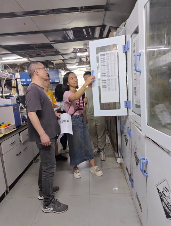 为进一步强化安全管理,确保教学科研工作的安全有序进行,化学生物学与生物技术学院在针对2024年第一季度学院内存在的安全隐患进行了全面整改,并于近期由分管安全的副院长全军民老师亲自带队,对整改工作进行了细致的复查。学院安全主管胡晓娇老师以及化学生物学与生物技术学院教工党支部(以下称化生教工支部)组建的“安全护卫队”共同参与了此次复查工作,展现了学院上下对安全工作的高度重视和积极态度。