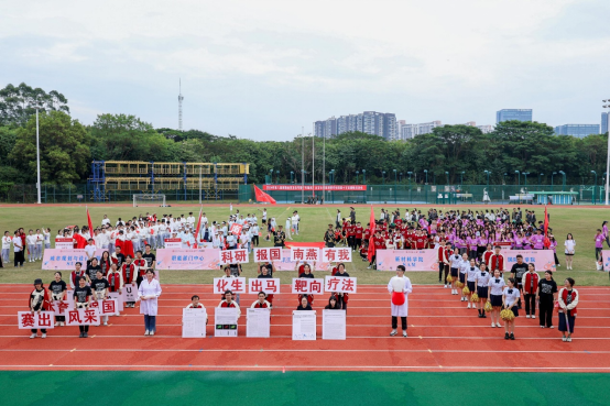 本次运动会吸引了来自不同学院的众多队伍参与,选手们在各项比赛中展现了他们的智慧和协作能力。化生学院的同学们以“科研报国 南燕有我,体育强国 超越自我,赛出风采 永不言败”为口号,展现了他们对科研的热爱、对国家的忠诚、对体育的执着以及对未来的憧憬。这不仅是一句口号,更是化生学子行动的指南和精神的写照。