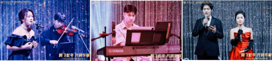最后,化生院的老师们和赞助商嘉宾为大家带来一首首精彩的歌曲演唱。翟宏斌、周建荣演唱《北国之春》,尹丰、张仲超演唱《小小》,李子刚、卓振建、刘锦信《海阔天空》,夏才皓(衫树园)演唱《蓝莲花》,李子刚、黄昊、姜延龙演唱《男儿当自强》。在欢乐的音乐声中,整场晚会表演圆满地拉上了帷幕。