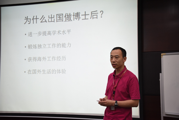 黄昊精心准备了PPT,并从“为什么出国做博士后”、“选择什么样的实验室”、“选择导师”、“申请准备”、“应避免的情况”、“适应国外博士后环境”、“做博士后以后的发展”等角度解析国外博士后申请、工作的方方面面,并就博士后出站的后续发展给同学们提供实用的建议。